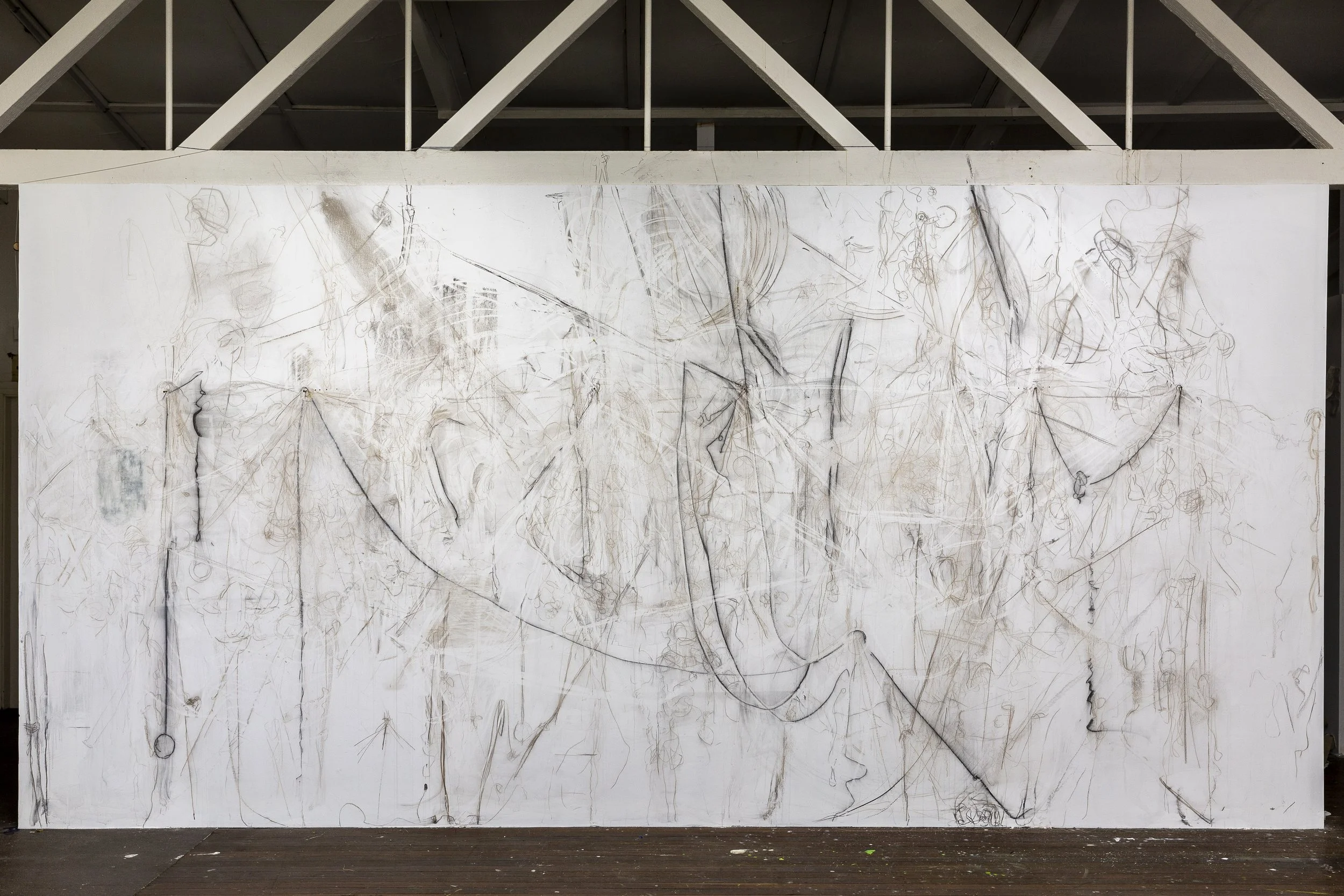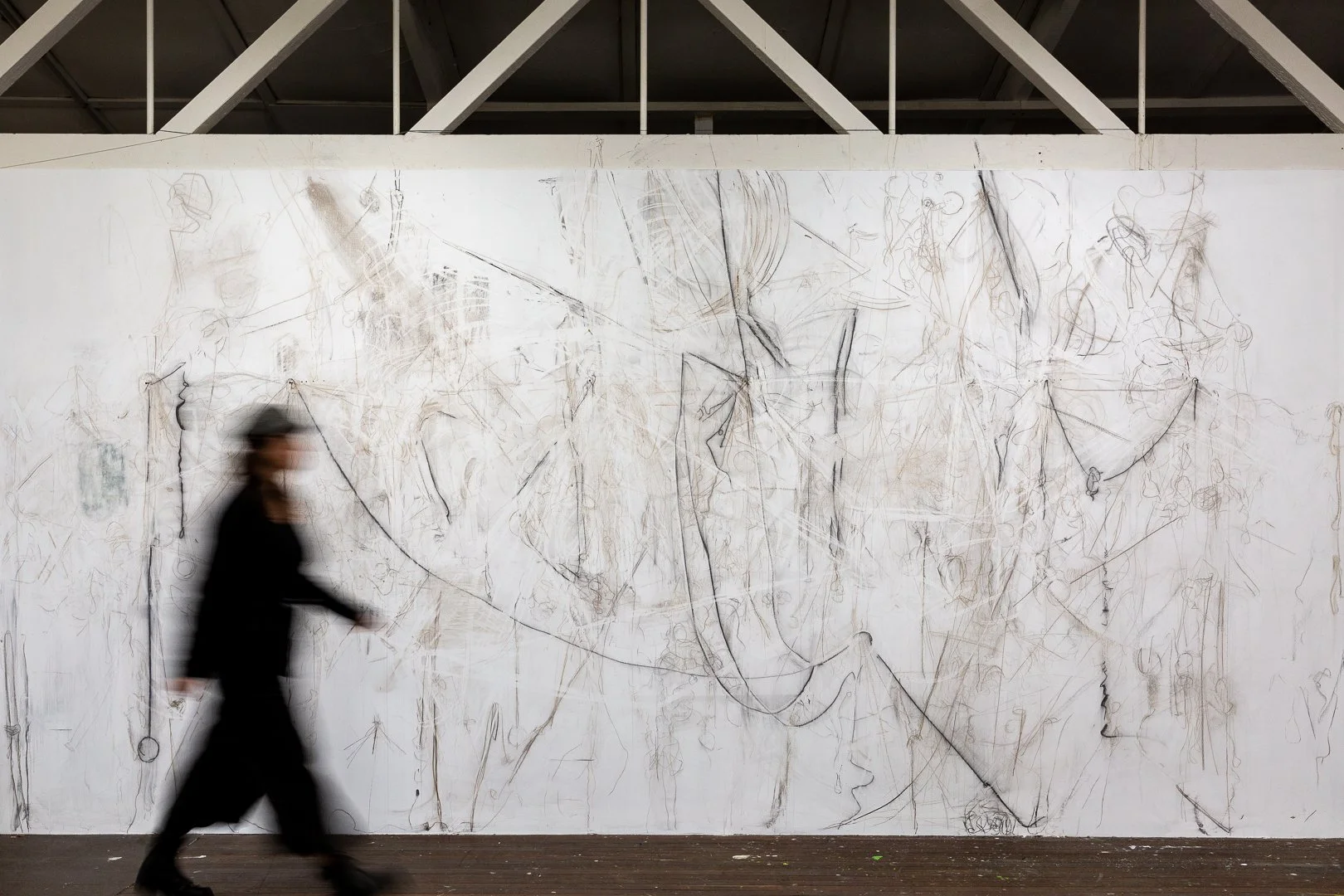 Created during Sydney's 2021 lockdown, this work evolved over 104 days through a continuous cycle of creation and erasure, with the drawing materials gradually transforming into sculpture. At the end of the lockdown, it was repainted in a private, collective act, reflecting on change, impermanence, and endings.